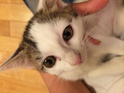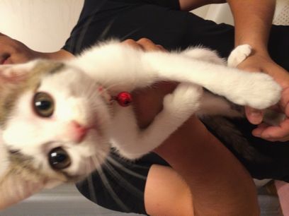 声は、捨てられた時、泣き過ぎたのか??声を「ニャー」と出しているつもりですが、此方には全く聞こえません。