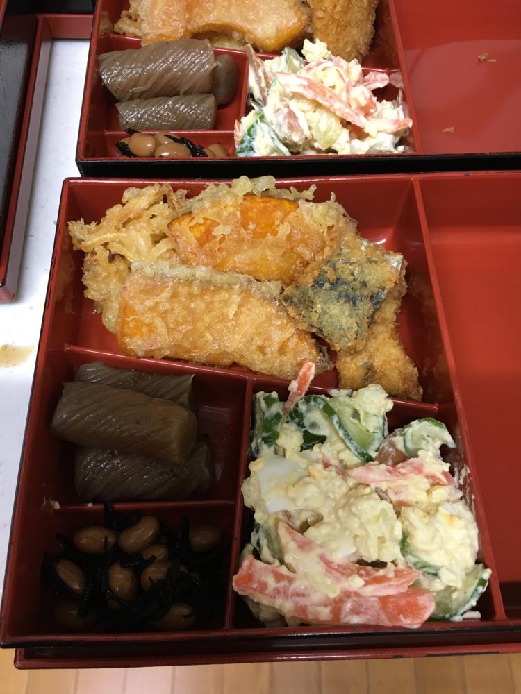 今日のお弁当 投稿日:2017年02月28日 今日のお弁当です。 天ぷらの玉ねぎと、かぼちゃと、さんまのから揚げです。 さんまは、安い時に作りだめしておいた物で、ポテサラは、夜の内にじゃがいもを茹でておいたし、人参は、チンだし、簡単、簡単。 こんにゃくは、日曜日に作りだめしていたし、ひじき豆も日曜日に作りだめです。 天ぷらの下に、レタスを敷くと良いお弁当になるのにねえ。 やっぱりこの辺が、手抜きですねえ。 今日は、長女の子供が今日から試験中で、1つ余分に作りました。 作らせて貰える幸せ・・・・・岡本芳子 記事詳細へ | コメント(0) | スタッフの独り言・・・・