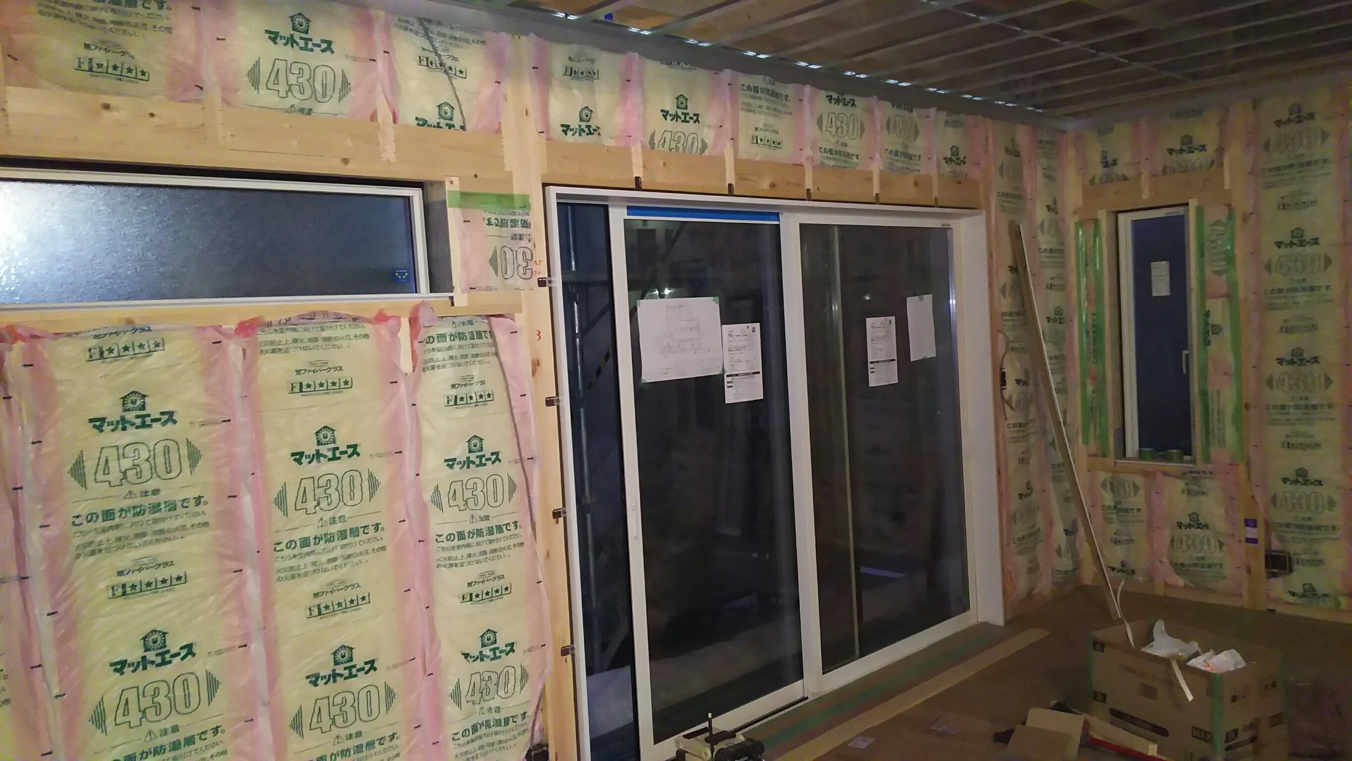 断熱材やサッシも入りました。