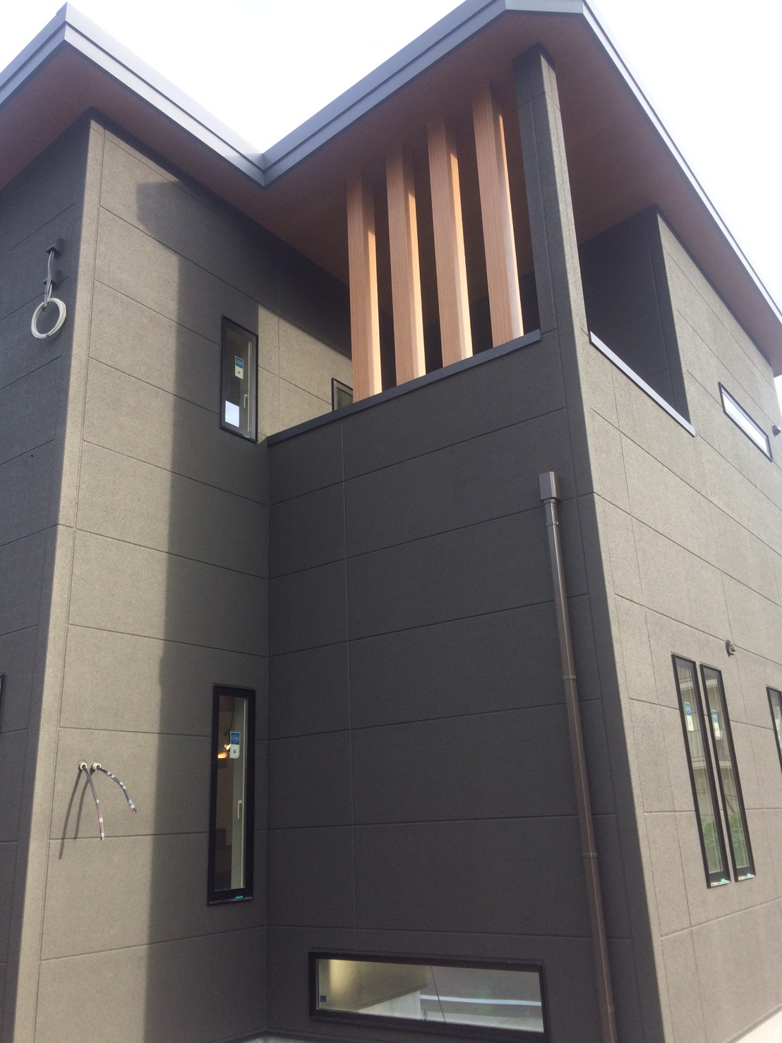 もうすぐ完成~大津市G様邸~ 投稿日:2016年10月05日 足場が外れました 黒にも見え、茶色にも見え、グレーにも見えるとってもいい色です。 完成まであと少し。 すごく楽しみです 記事詳細へ | コメント(0) | 大津市G様邸
