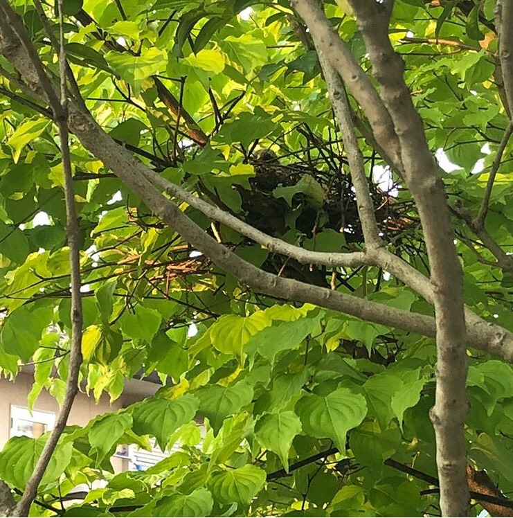 我が家の庭木に気づいたら鳩の巣が。