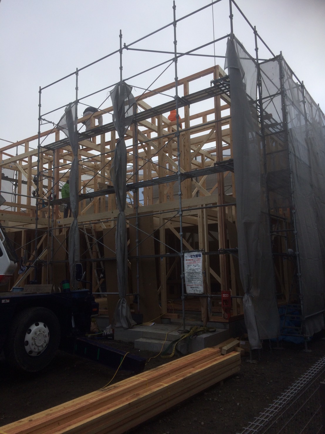 雪がちらつく中の上棟でした。